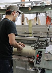 「平織り」・「からみ織り」ともに国内で生地を織り上げ、加工し製品へ。